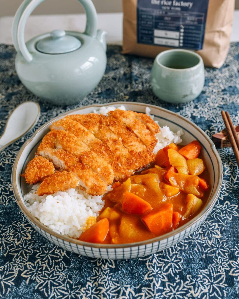 ¡Este arroz con pollo al curry japonés Katsu es nuestra nueva receta favorita del momento! Es una sinfonía de texturas: crocante chuleta de pollo empanizada con panko, cremosa salsa de curry y arroz japonés bellamente translúcido y ligeramente pegajoso. ¿Qué más se le puede pedir a una comida?