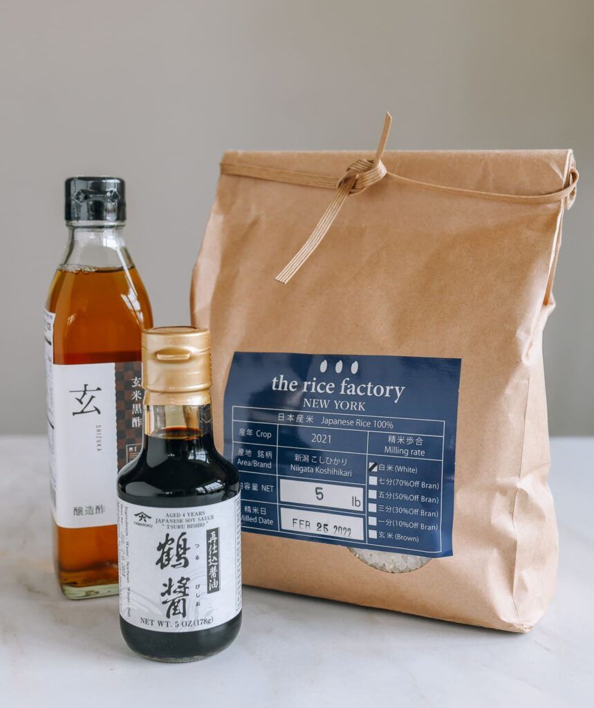Usamos arroz de la fábrica de arroz NEW YORK, una empresa con sede en Nueva York que se especializa en proporcionar arroz japonés de la más alta calidad a clientes fuera de Japón. Nos enviaron su koshihikari, una variedad de arroz Japonica.