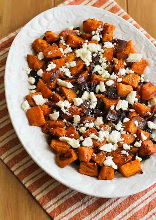 A los fanáticos del queso feta les encantarán estos Camote asado con cebolla morada y queso feta!