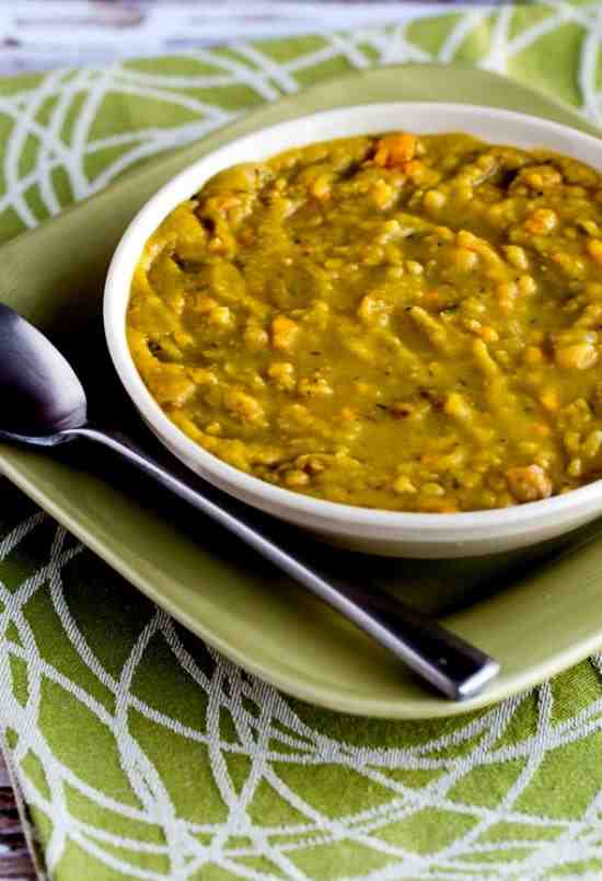 Sopa instantánea de guisantes partidos con jamón y batatas no es demasiado fotogénico, ¡pero esto es tan sabroso!