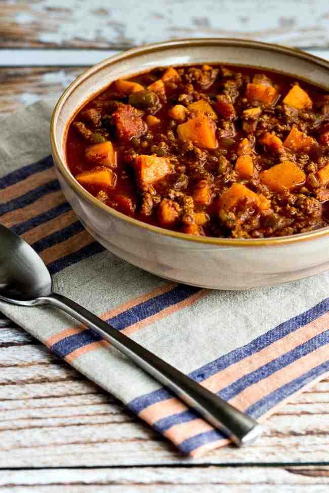 Chile de patata dulce de pavo es delicioso y este es un chile sin ingredientes procesados. ¡Y, por supuesto, puede reducirlo en carbohidratos con más pavo (o carne molida) y menos batatas!